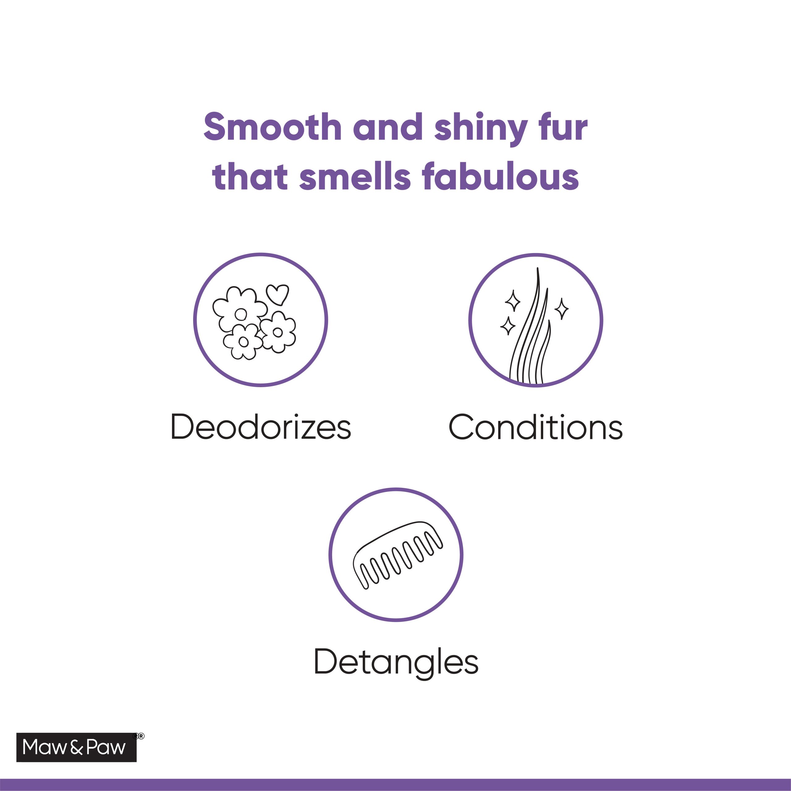 Deodorizes detangles and hydrates coat: